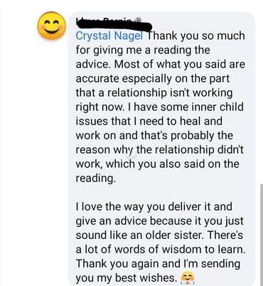 The questions are limitless when you have a psychic tarot card reading. Do not have a specific concern, That is ok! Spirit always has messages, which are interpreted using psychic abilities such as : Clairvoyants', Claircogzance, Clairaudience, Claireistence.