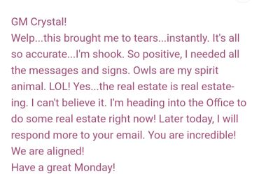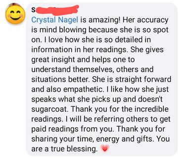 The purpose of any reading with me is to dig deep and explore the root causes and underlying, often unseen forces that are driving your situation. We will seek clarity to the circumstances of your interpersonal relationships, the work that you perform and what you are being called to do. Plus who does not like to hear about themselves. will have many OMG moments during a reading with me.